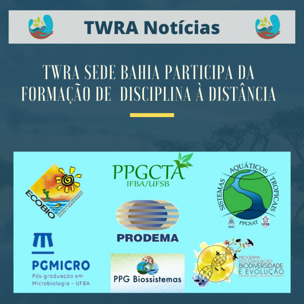 Professores de diversos Programas de Pós Graduação da Bahia juntamente com a Sede local da TWRA – Tropical Water Research Alliance lançaram a disciplina coletiva “O sentido das águas da nascente ao mar: diversidade biológica, processos, serviços, usos, impactos e medidas mitigadoras”.
