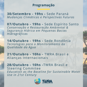 É com grande prazer que a TWRA – Tropical Water Research Alliance confirma seu II Ciclo de Webinários.