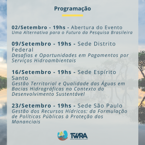 É com grande prazer que a TWRA – Tropical Water Research Alliance confirma seu II Ciclo de Webinários.