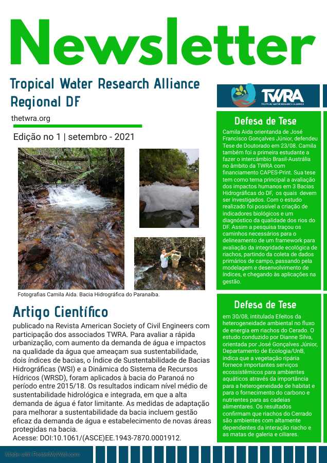 Com o intuito de veicular informações a respeito dos acontecimentos e notícias que envolvem a TWRA e os associados do Distrito Federal, a Sede TWRA-DF idealizou uma newsletter periódica a ser veiculada via e-mail. O conteúdo e diagramação foi produzido pela mestre Maria Rita Souza Fonseca, sob supervisão do Gerente de Publicações e Editoração da TWRA, Dr. Thomaz Aurélio Pagioro.