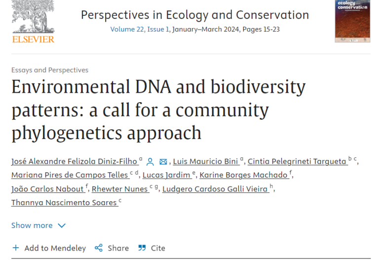 Foi publicado na revista Perspectives in Ecology and Conservation, o primeiro artigo desenvolvido por meio do Programa Araguaia Vivo. O artigo intitulado de “Environmental DNA and biodiversity patterns: a call for a community phylogenetics approach“, discute o uso de DNA ambiental para estudar a biodiversidade. A informação sobre a variação molecular no DNA tem sido tradicionalmente utilizada para delimitar “espécies” ou unidades equivalentes, no ambiente, avaliando a diversidade pela contagem dessas unidades.