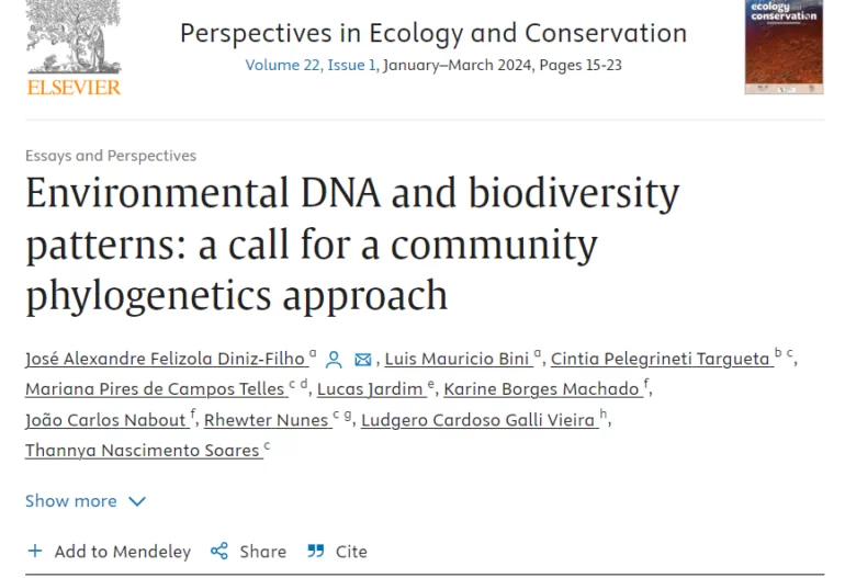 Foi publicado na revista Perspectives in Ecology and Conservation, o primeiro artigo desenvolvido por meio do Programa Araguaia Vivo. O artigo intitulado de “Environmental DNA and biodiversity patterns: a call for a community phylogenetics approach“, discute o uso de DNA ambiental para estudar a biodiversidade. A informação sobre a variação molecular no DNA tem sido tradicionalmente utilizada para delimitar “espécies” ou unidades equivalentes, no ambiente, avaliando a diversidade pela contagem dessas unidades.